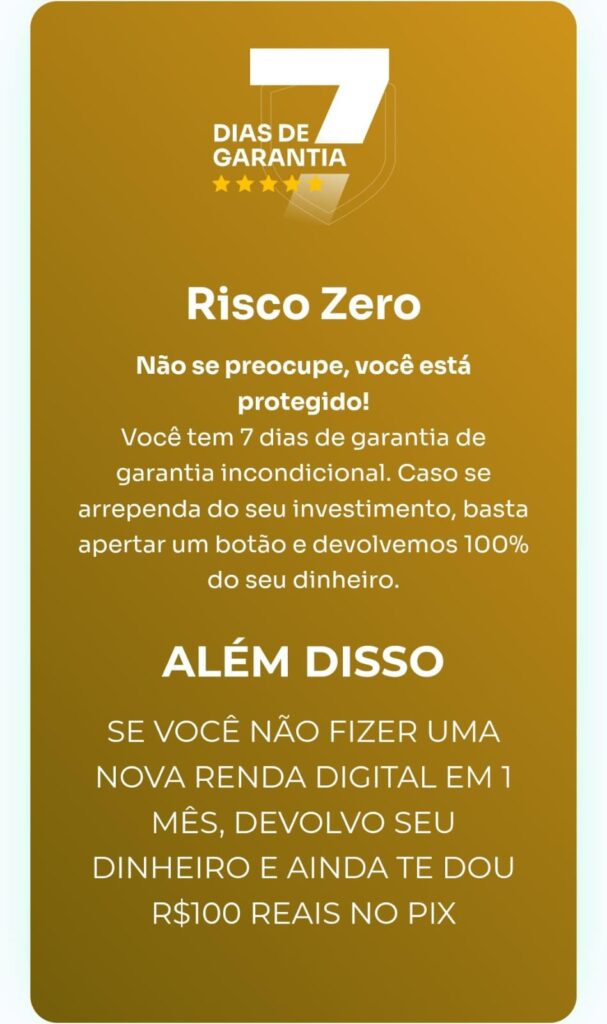 SE VOCÊ NÃO FIZER UMA NOVA RENDA DIGITAL EM 1 MÊS, DEVOLVO SEU DINHEIRO E AINDA TE DOU R$100 REAIS NO PIX